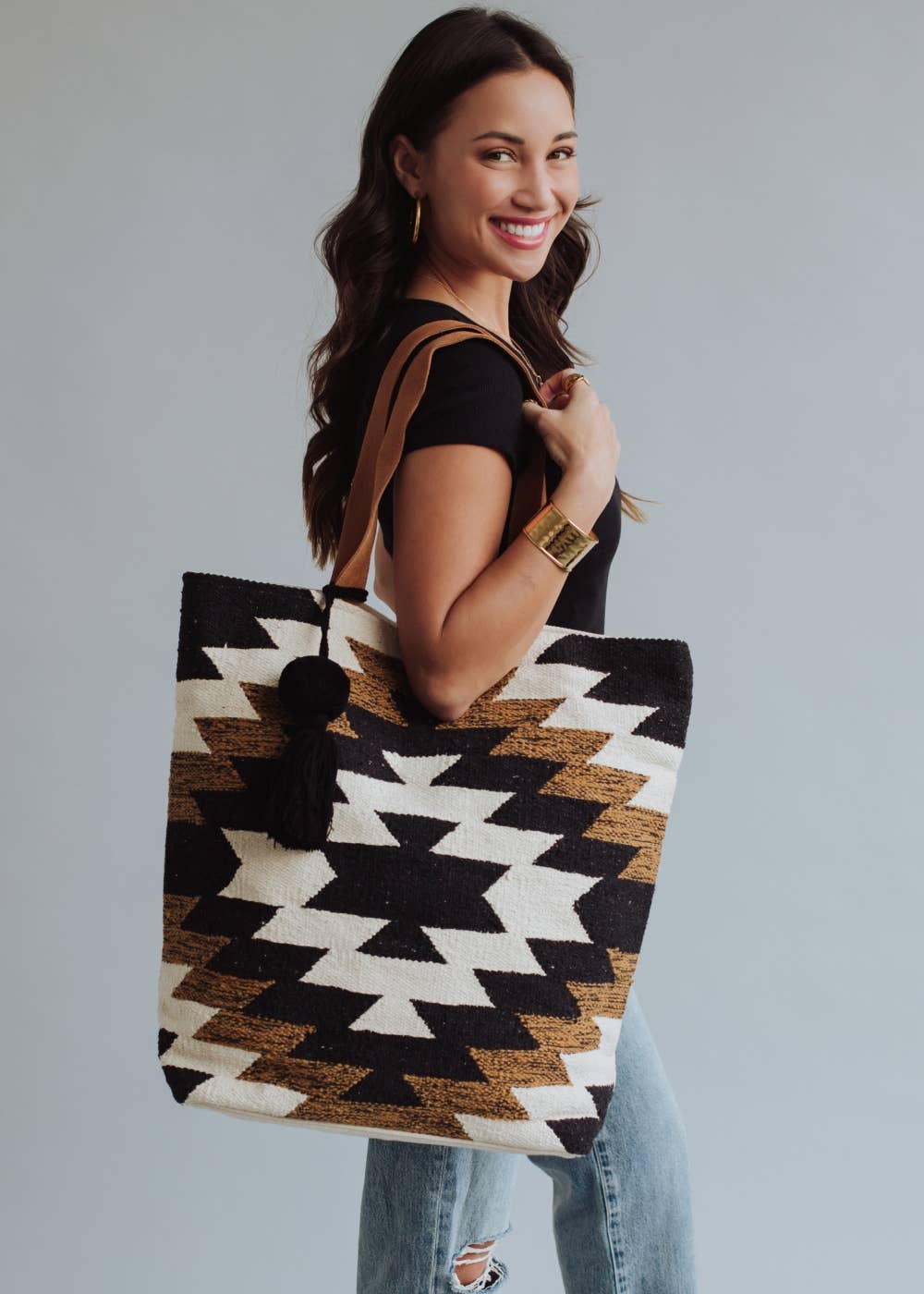 Black, White & Brown Aztec Tote